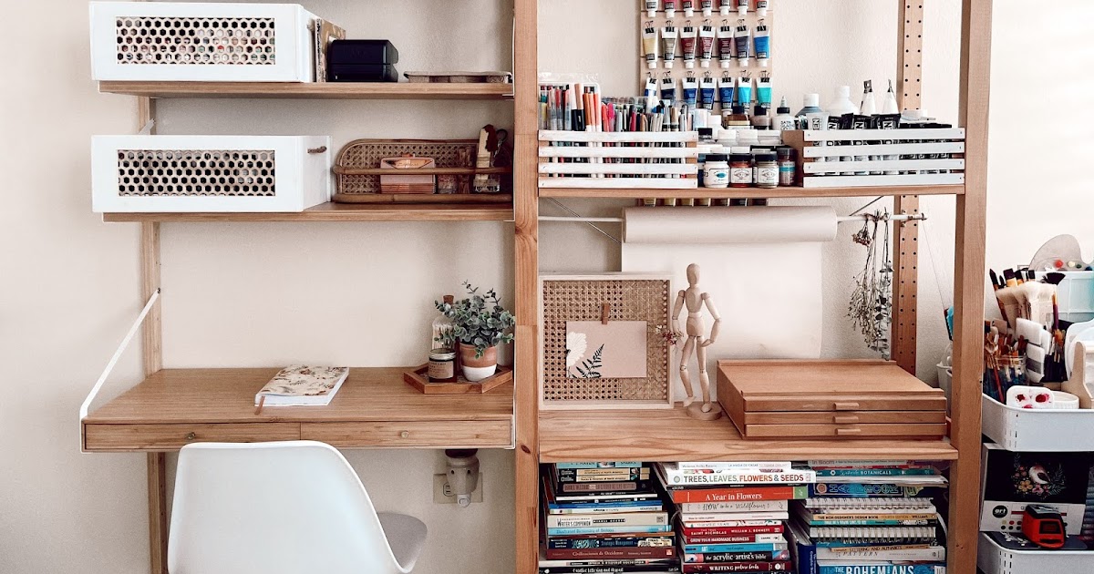- Tener accesible tus materiales es súper importante: Por ejemplo, si donde usualmente creas es en el comedor y tienes tus materiales guardados en el closet, puedes tener un envase, carrito u organizador que puedas sacar y guardar fácilmente para que así evites el estar saliendo de tu tiempo creativo para buscar los materiales cada vez que necesites algo.